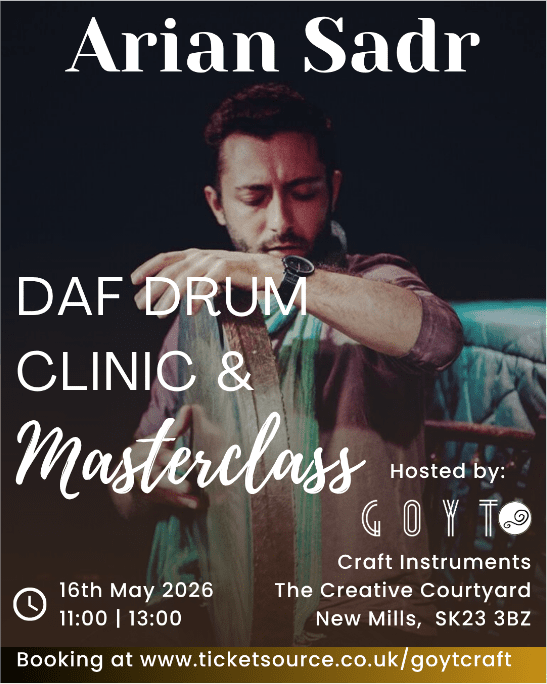 This is the second of two events held across the day. A morning drum clinic, focusing on Tonbak and Daf playing is held from 11am (Ticketed Separately). Both events are suitable to attend in isolation. Or join us for both, for a full morning of learning and playing.